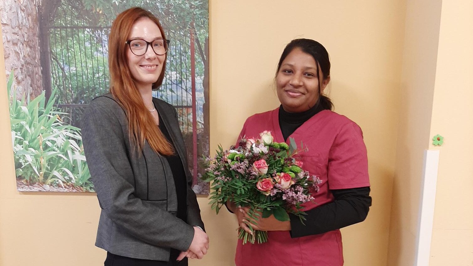 Frau Shekhar hat im Februar 2025 ihren Dienst auf dem Wohnbereich 1 aufgenommen. In ihrem Heimatland Indien hatte sie bereits als ausgebildete Pflegekraft gearbeitet, ihr Abschluss musste hier in Deutschland noch anerkannt werden. Nach einigen Monaten Tätigkeit als Pflegehelferin hat Frau Shekhar dann nochmal die Schulbank gedrückt und eine mündliche und praktische Prüfung zur Pflegefachkraft im ersten Anlauf mit Bravour bestanden. Wir haben großen Respekt vor dieser tollen Leistung!